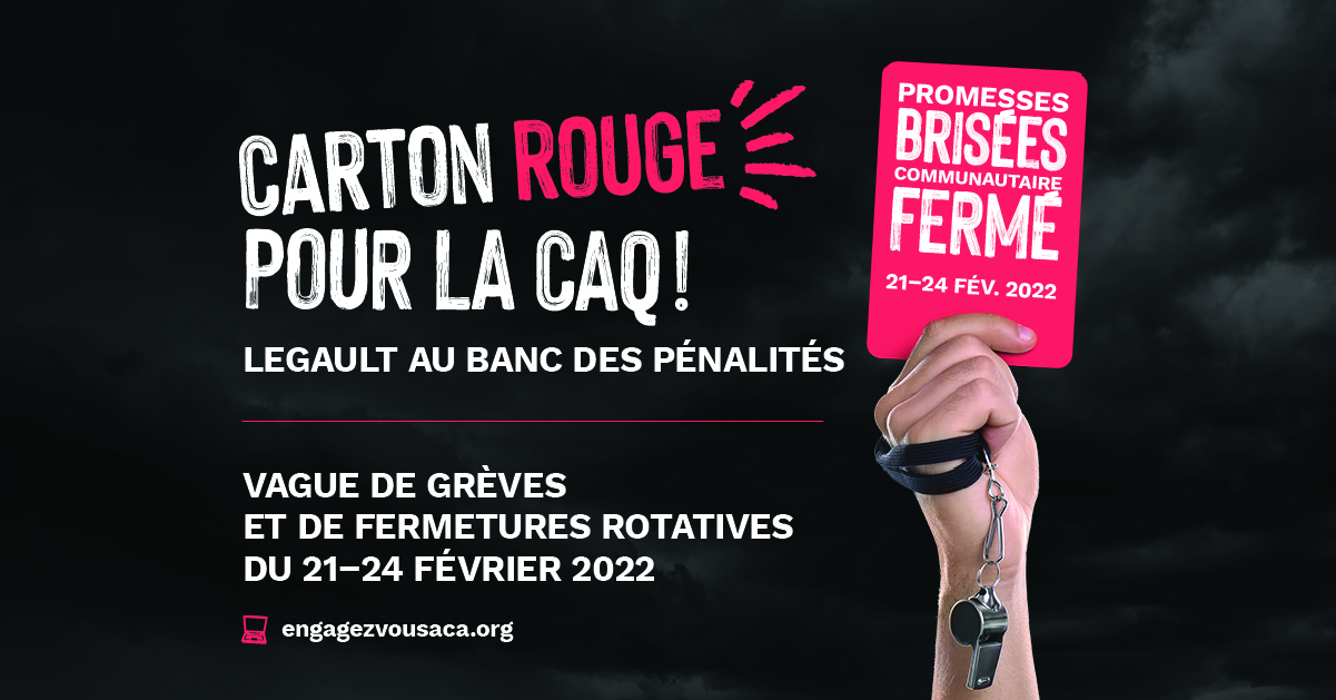 Coaticook, 16 février 2022 – Du 21 au 24 février 2022, dans le cadre du mouvement Engagez-vous pour le communautaire, de nombreux organismes seront en grève de façon rotative, partout au Québec. Les organismes de la MRC de Coaticook se montrent solidaires en adhérant au mouvement le 23 février prochain.