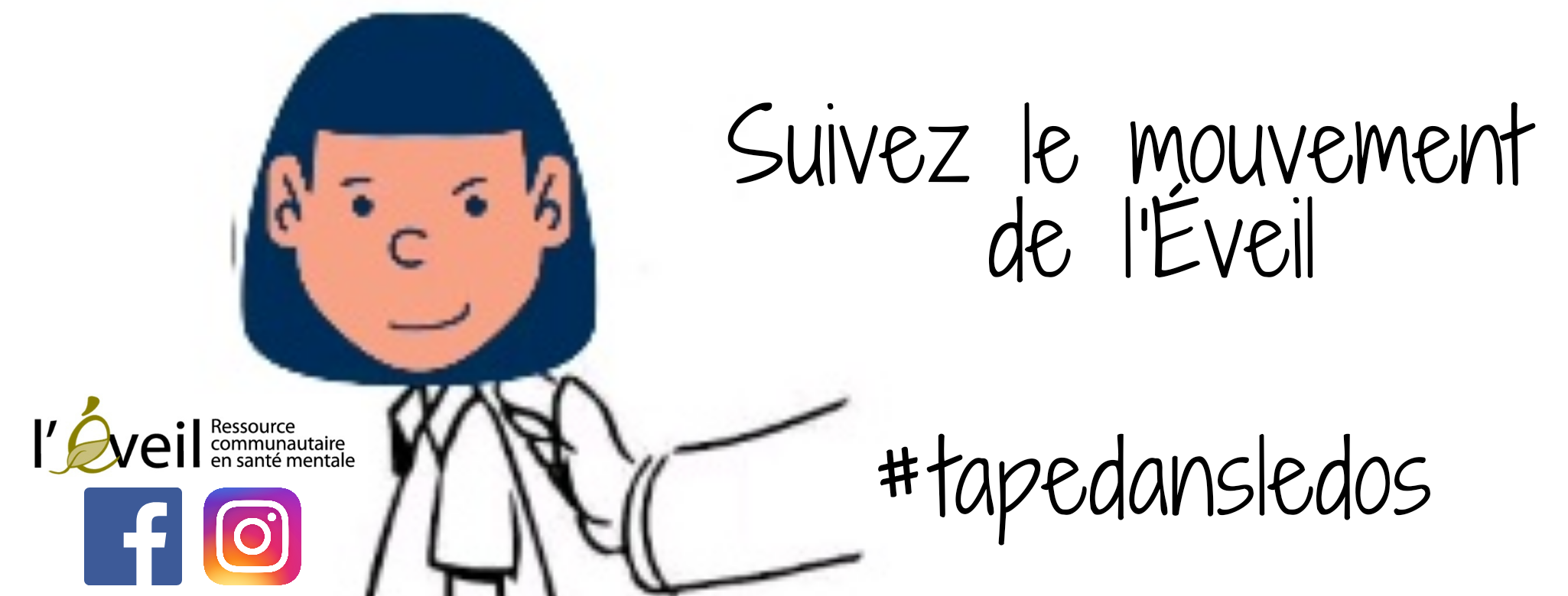 Les gens sont invités à prendre part à la campagne Tape dans le dos en utilisant le #Tapedansledos. Une tape dans le dos virtuelle, afin de respecter les consignes sanitaires, pour son enfant, son collègue de travail, sa coiffeuse… bref qui a fait la différence dans votre vie aujourd’hui? Soulignez-le.