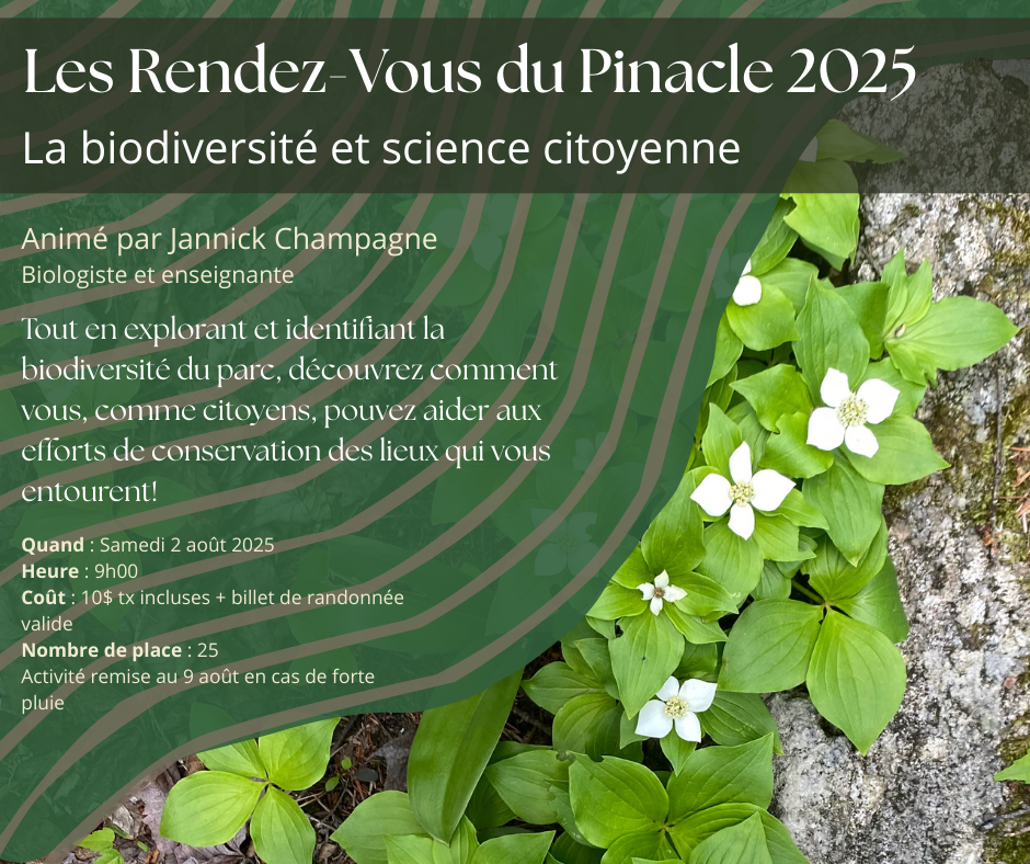 Prix 10$ incluant les taxes. – Un billet de randonnée valide est également nécessaire pour assister à l’activité.