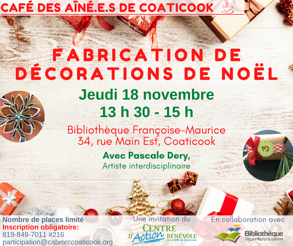 Inscription obligatoire: Patricia Patino, 819-849-7011, poste 216, ou participation@cabmrccoaticook.org