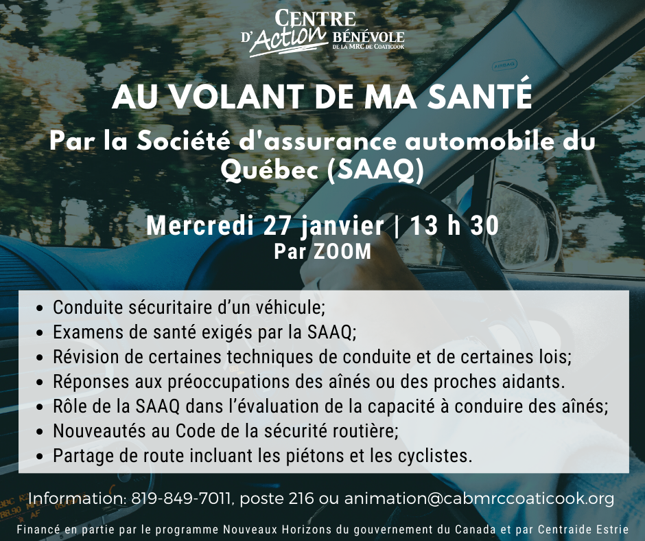 Pour assister à la conférence, cliquez sur ce lien: Au volant de ma santé
