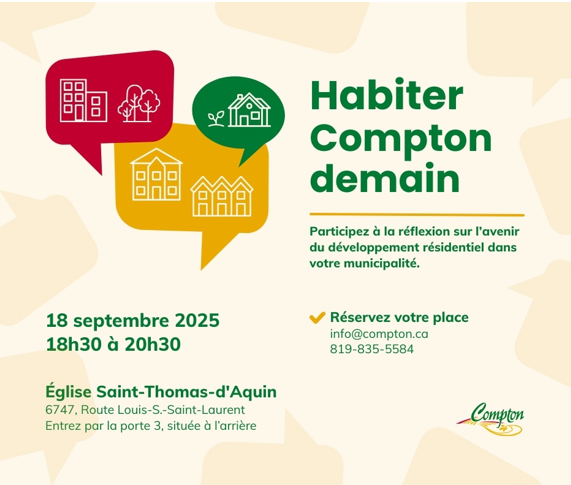 Merci de confirmer votre présence par courriel à info@compton.ca ou par téléphone au 819 835-5584