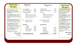 - Activités de la soirée dès 19h : chant, musique et karaoke