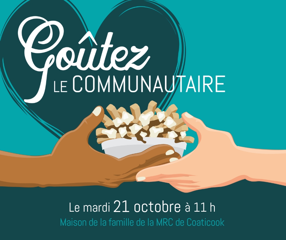 Le milieu communautaire de la MRC de Coaticook vous invite en grand nombre à cette 10e édition de Goûtez le communautaire. Le concept est simple : visitez les kiosques des organismes et dégustez une bonne poutine, gratuitement! On vous y attend entre 11h et 14h, dans les locaux de la Maison de la famille (50 rue Court), à l’étage!
