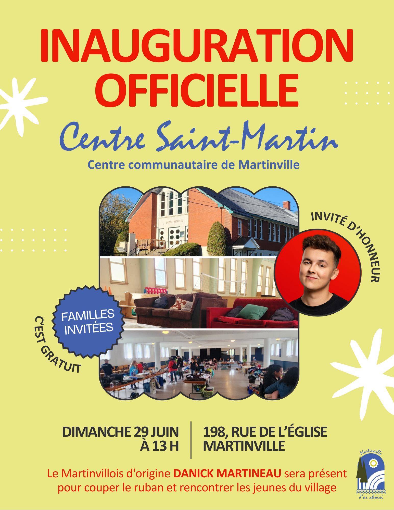 La Municipalité est fière d’annoncer que le Martinvillois d’origine DANICK MARTINEAU sera présent à titre d’invité d’honneur pour couper le ruban et rencontrer les jeunes