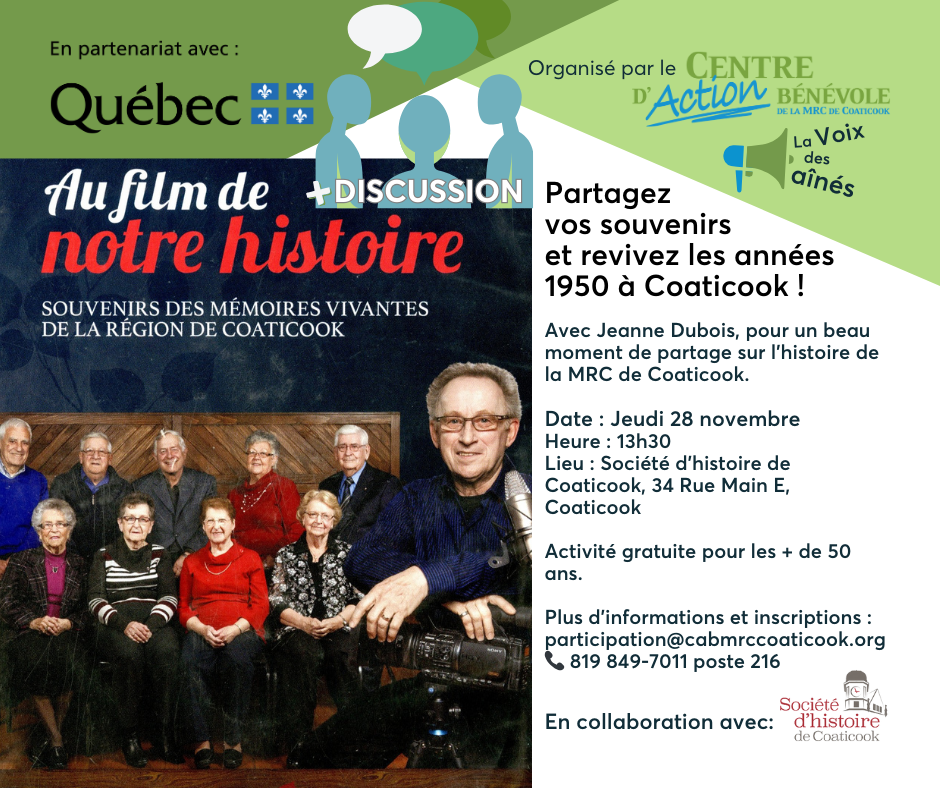Une activité organisée par le Centre d’action bénévole de la MRC de Coaticook en collaboration avec la Société d’histoire de Coaticook.