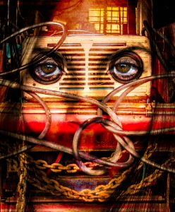 Les œuvres de la série Hybrides de l’artiste photographe Sarah Gobeil témoignent des artifices qui poussent l’être humain vers la standardisation, que ce soit au niveau de la mode, de la décoration, de la locomotion, de l’éducation, etc.