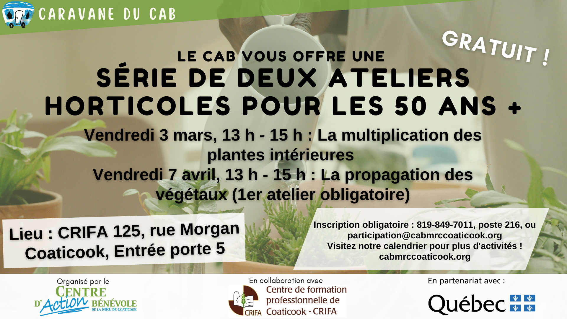 En collaboration avec le CRIFA, le CAB vous invite à venir jouer dans la terre ! Un atelier pour les 50 ans et + de la MRC de Coaticook, le vendredi 3 mars dès 13 [...]