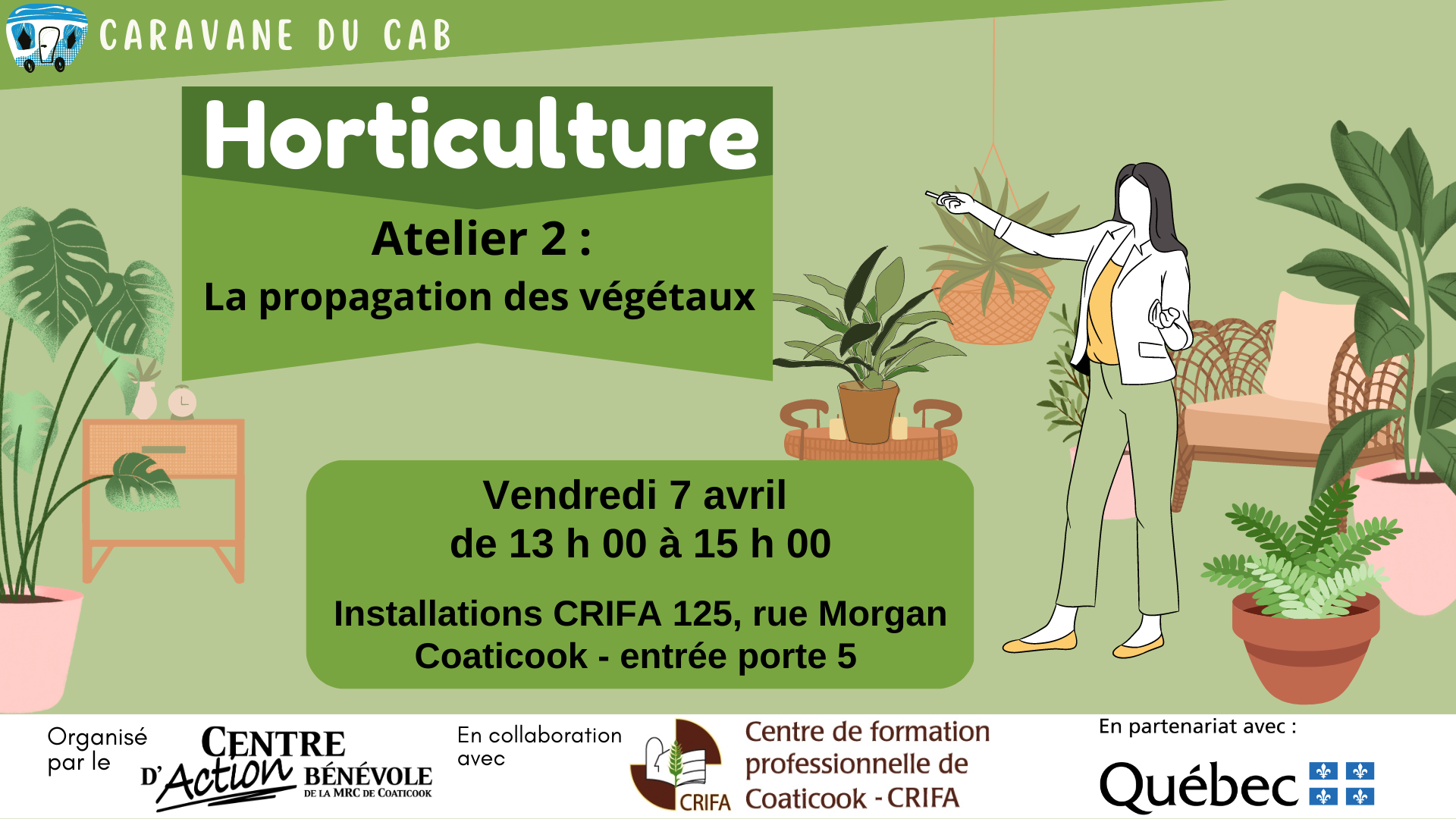 En collaboration avec le CRIFA, le CAB vous invite à venir jouer dans la terre ! 2e partie de l'atelier du 3 mars, avec Marie-Lou Lapointe, enseignante en production horticole au CRIFA. Dans cet atelier, [...]