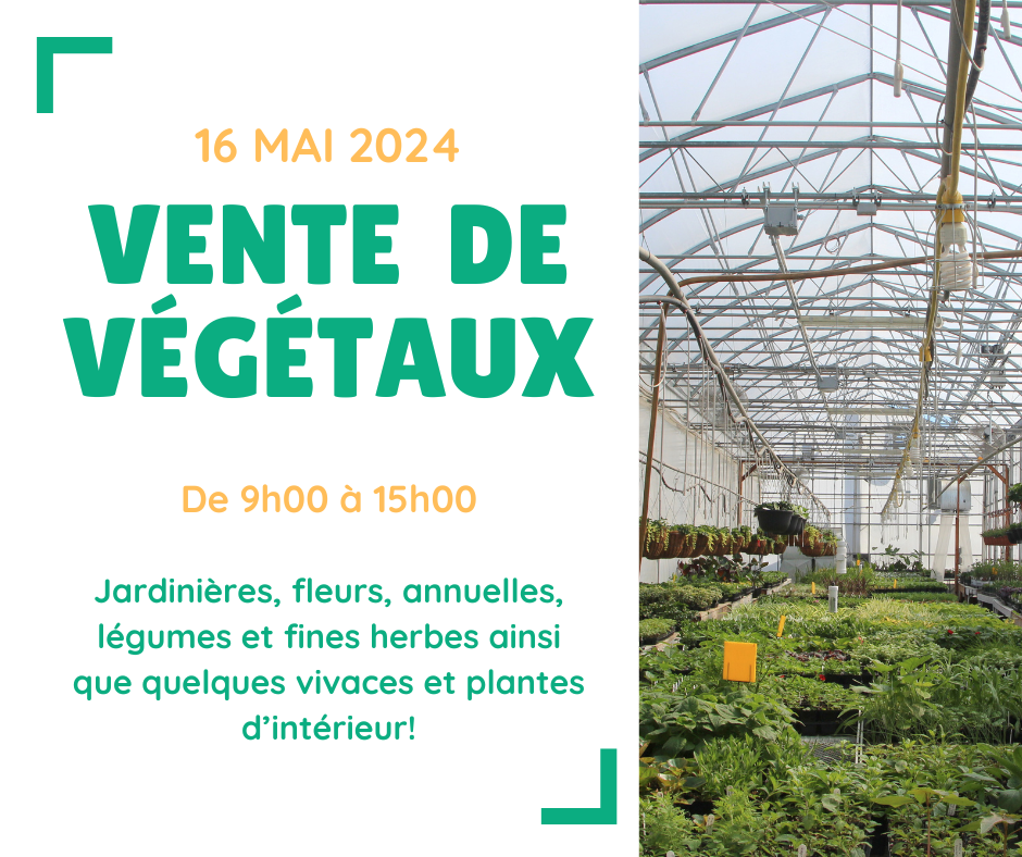 Vente de végétaux : jardinières, fleurs, annuelles, légumes, fines herbes ainsi que vivaces et plantes d’intérieur!