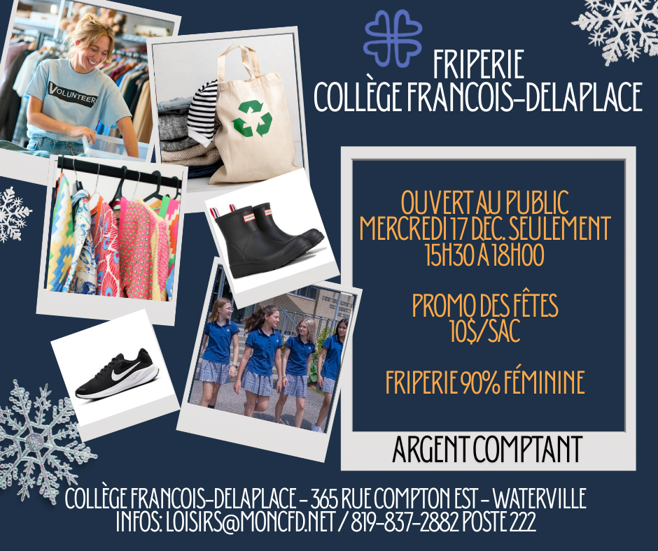 La friperie du Collège sera ouverte au public de la MRC de Coaticook, comme à chaque année, afin de mettre à la disposition des vêtements à très bas prix durant la période des fêtes `tous [...]