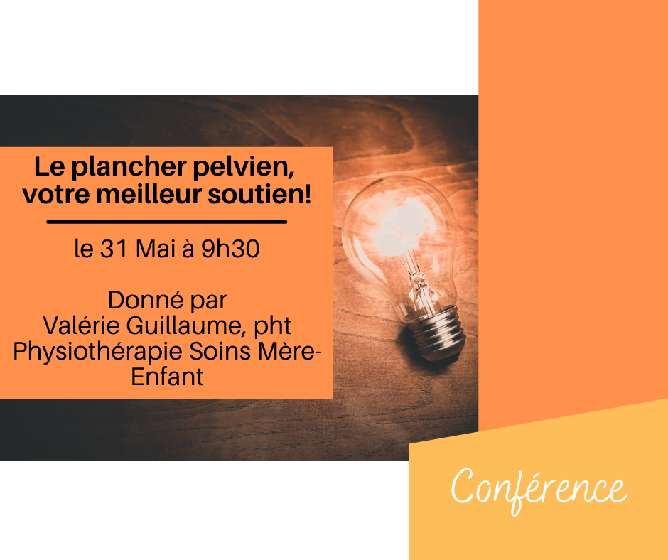 Valérie Guillaume Physiothérapeute en soin mère-enfant donnera une présentation sur la santé pelvienne chez la femme. *En cas de pluie, la conférence aura lieu au sous-sol de l'Église St-Jean (50 rue court)