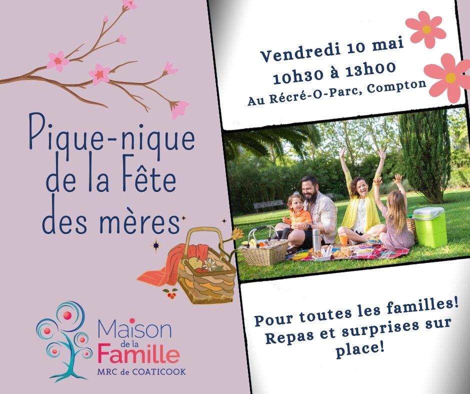 Le vendredi 10 mai aura lieu le pique-nique spécial de la Maison de la famille pour la Fête des mamans! Rejoignez nous autour de 10h30 au Récré-O-Parc de Compton pour partager un bon repas entre [...]