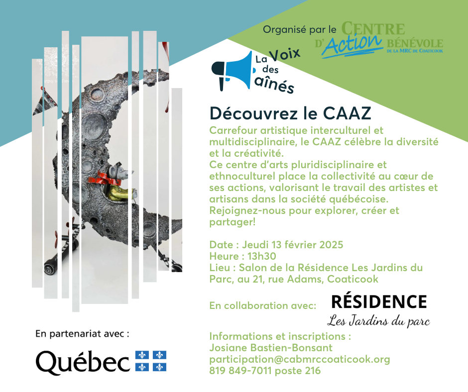 La caravane du Centre d'action bénévole de la MRC de Coaticook invite les personnes ainées à un mini-concert de musique traditionnelle à la résidence Les Jardins du Parc de Coaticook le 9 mai 2023 de [...]