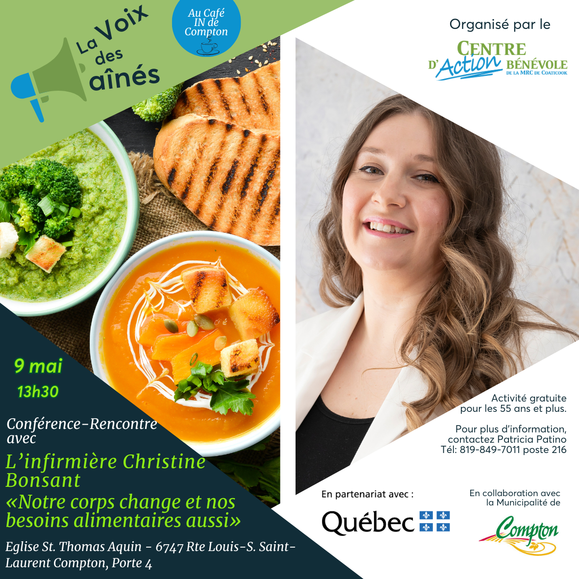 Dans le cadre du café-IN de Compton organisé par le Centre d'action bénévole de la MRC de Coaticook, venez rencontrer Christine Bonsant, une infirmière ayant une grande expérience avec les soins communautaires. Nous allons discuter [...]