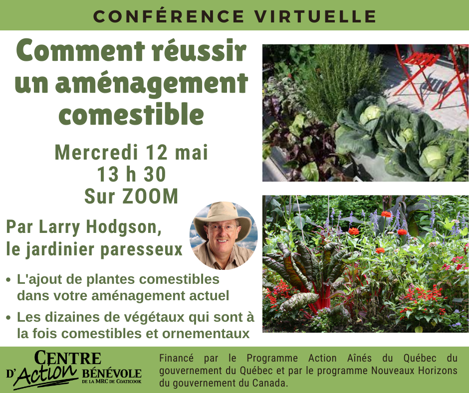 Conférence de M. Larry Hodgson, le jardinier paresseux C’est la plus récente tendance en aménagement paysager: non seulement veut-on que son terrain soit beau et agréable à vivre, mais comestible aussi! Vous découvrirez donc des [...]