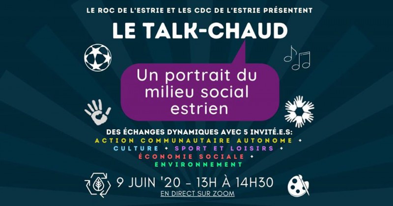 NE MANQUEZ PAS LE « TALK-CHAUD » ORGANISÉ PAR LE ROC DE L'ESTRIE & LES CDC DE L'ESTRIE Milieu social estrien : portrait et enjeux aux temps de la COVID-19. Des échanges avec différents milieux [...]
