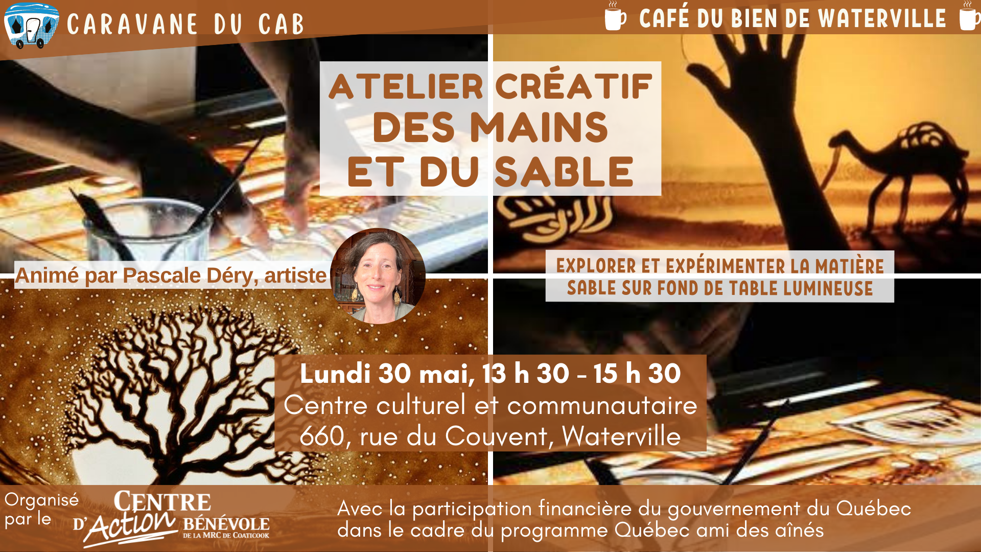 La Caravane du CAB au Café du Bien de Waterville : Atelier créatif – Des mains et du sable
