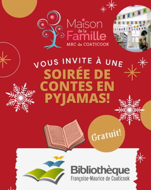 Le jeudi 5 décembre à 18h30, la Maison de la famille vous invite à une soirée de contes en pyjamas en collaboration avec la Bibliothèque Françoise-Maurice de Coaticook. L'événement aura lieu à la Bibliothèque Françoise-Maurice [...]