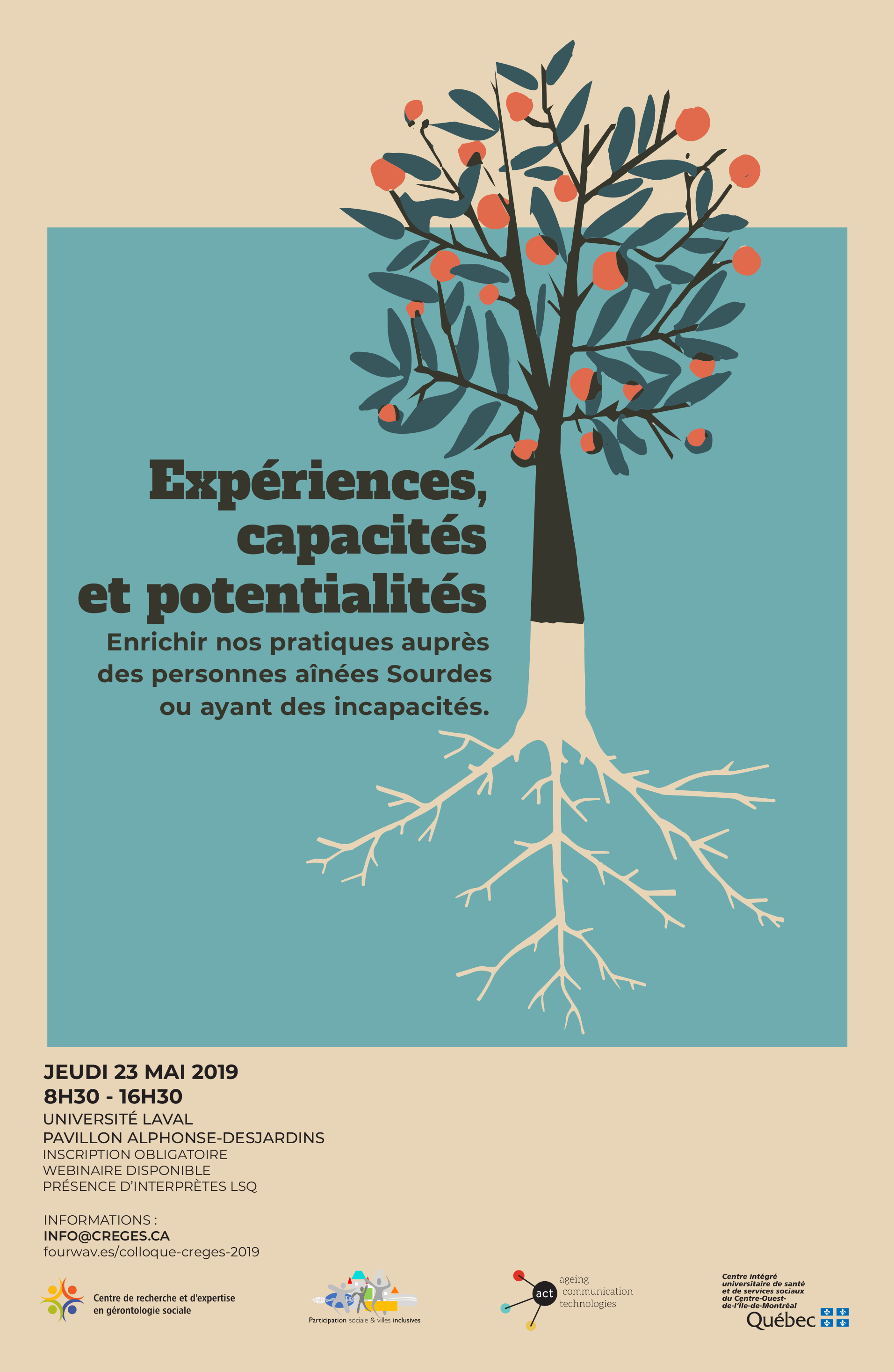 Le 23 mai prochain aura lieu le colloque annuel du Centre de recherche et d’expertise en gérontologie sociale (CREGÉS) qui portera sur les Personnes aînées Sourdes ou ayant des incapacités (ex. audition, vision, parole, physique, santé mentale, DI, etc.).